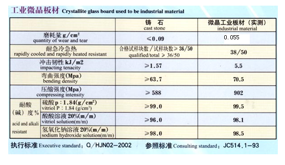 1.耐磨損:壓延微晶板材具有優異的耐磨性能,其耐磨程度達0.055g/cm2,是普通鑄石的2-3倍(0.09g/cm2),錳鋼的7-8倍,是鑄鐵的15-20倍。